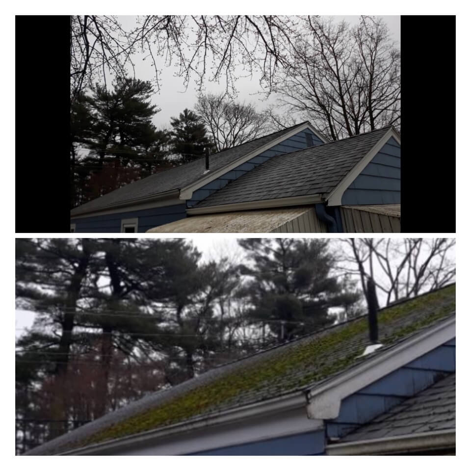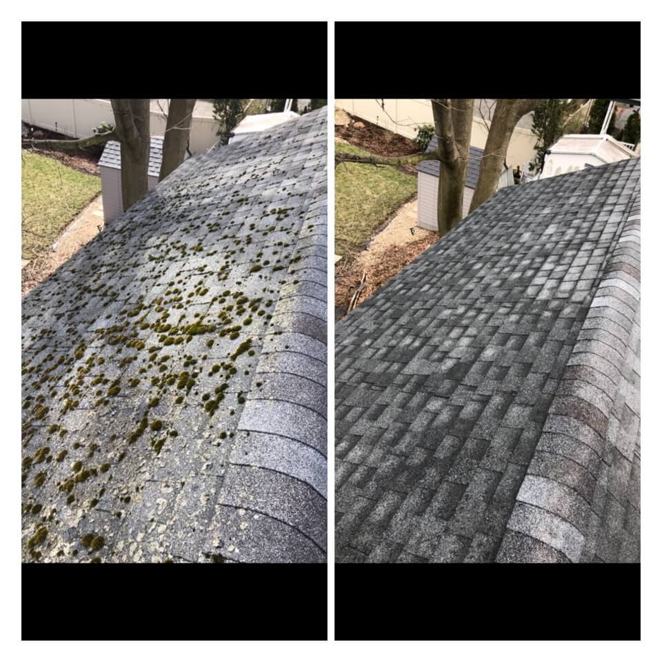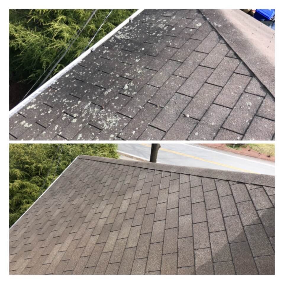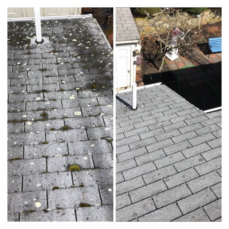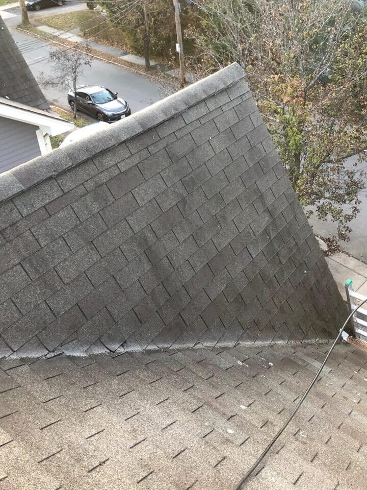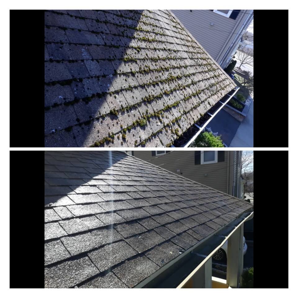 HiCleaners is the most experienced company in Charlestown, MA that deals with roof washing and roof soft washing. All of our employees are trained to recognize precise solution mixing ratios to provide you with the safest and most effective soft washing service. Roofs are a commonly neglected part of a house due to the fact that most people don’t have ladders to access it, so it is very easy to just leave it alone and forget about problems that may start to arise. Just like many home owners, discoloration and small bits of moss on a roof can be overlooked because of the misconception that it is just aesthetic. However, it isn’t just aesthetic, the moss slowly lifts the granules off the shingles which in turn shorten the life of the shingle. The moss also spreads, just like any bacteria if it is left alone for too long, it can quickly become a problem that spirals out of control. Call HiCleaners for a free quote, we only use the most advanced eco-friendly solutions and equipment to make sure the job is done right, for the safety of the employees, your plants, grass, pets, and children.